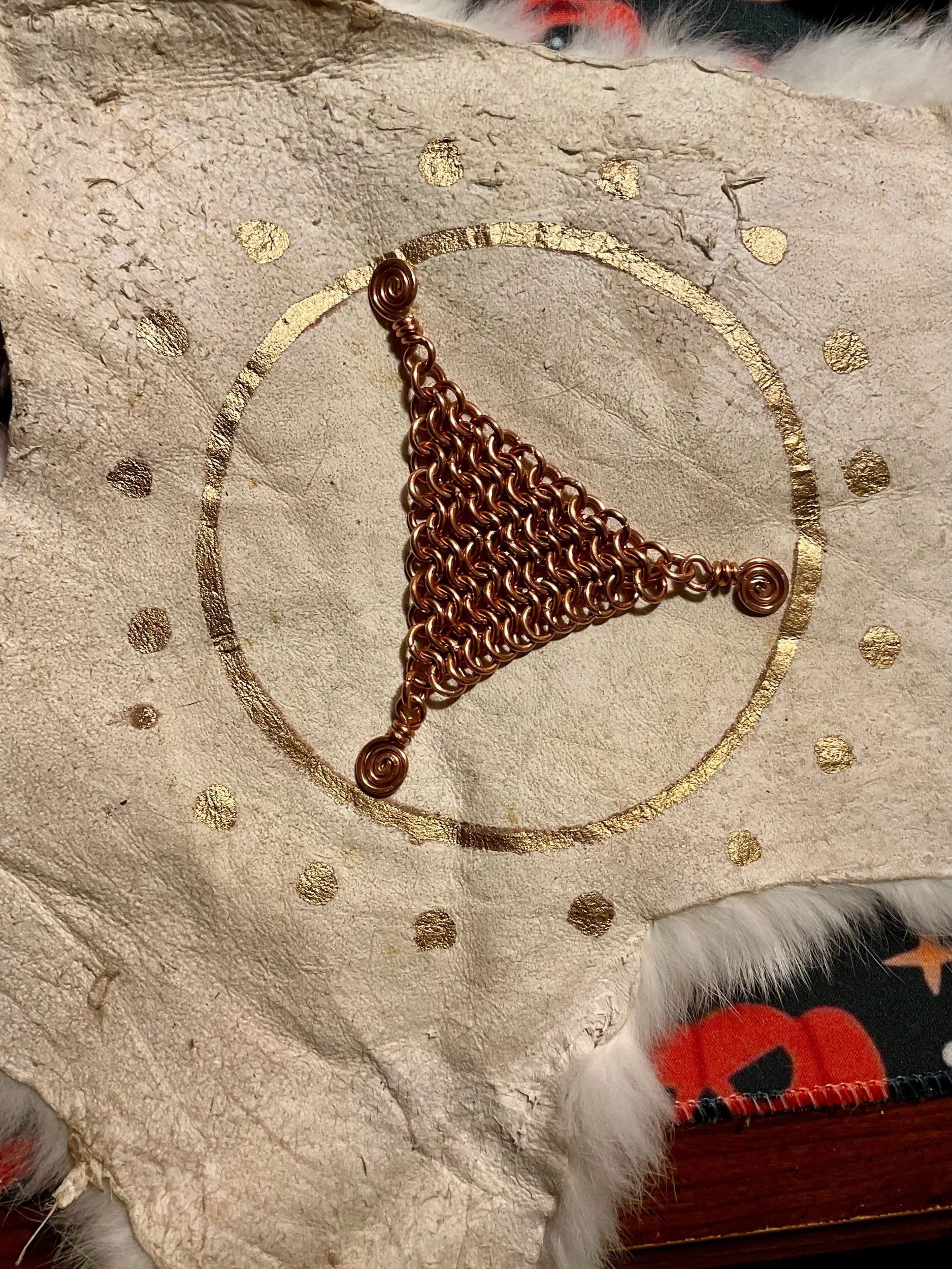 A fidget made of 14g copper rings and two spirals.